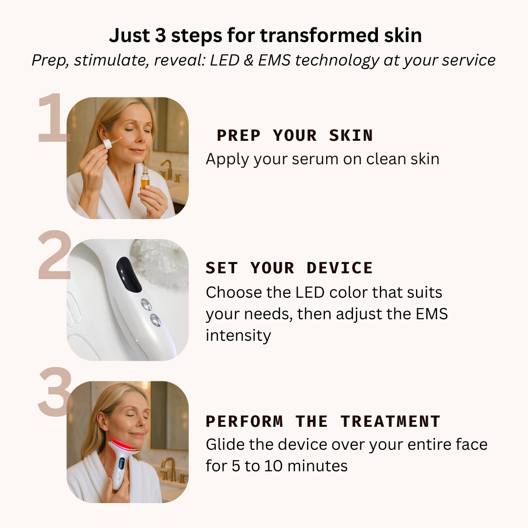 Our device is designed for all women who want to firm, smooth, and revive their skin — without resorting to invasive treatments.